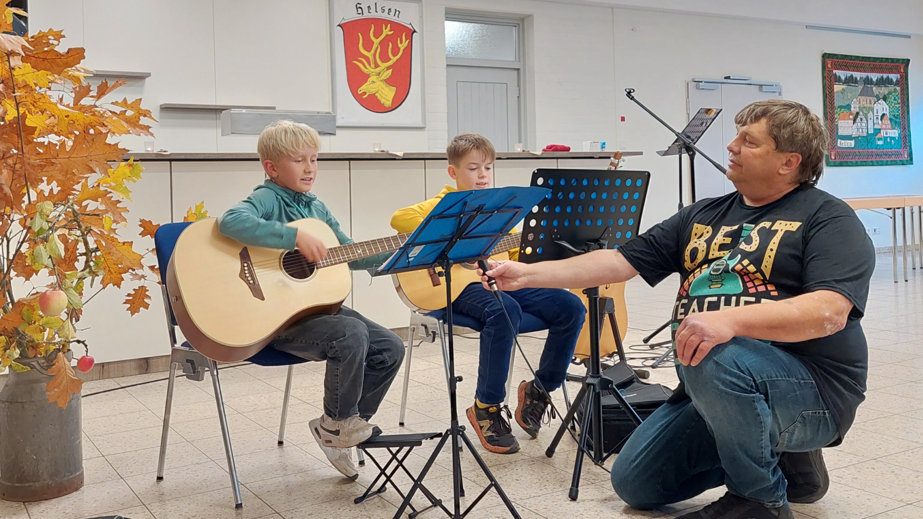 Für das leibliche Wohl war bestens gesorgt: Ein liebevoll vorbereitetes Kuchenbuffet und die musikalische Darbietung der Gitarrengruppe aus Helsen unter Leitung von Uwe Schirsching mit Kindern sorgten für eine rundum stimmungsvolle Atmosphäre.